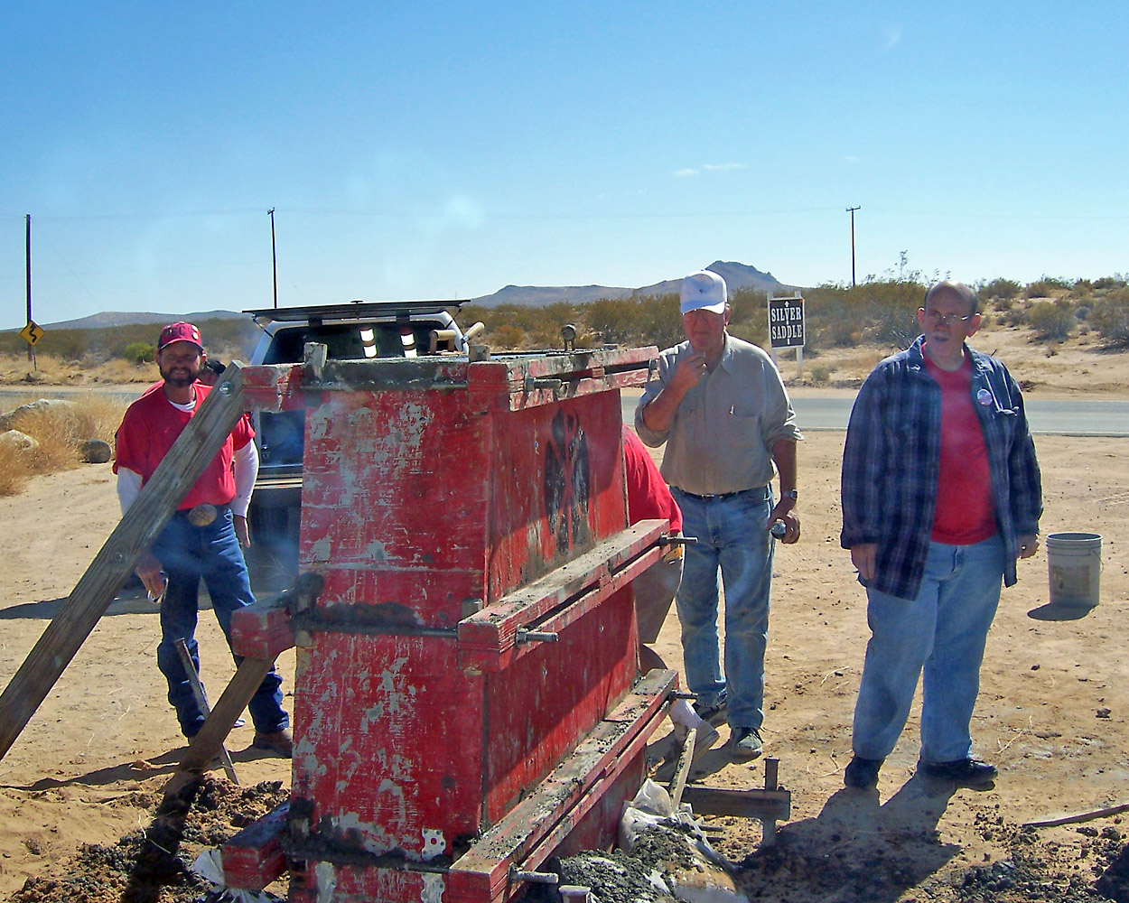 Our Mojave-Randsburg Road Monument had been poured the week before the doin's by a 14-man Clamper crew led by PXL's XNGH Joe Szot, and on Saturday, October 14, 2008, at 11:00 a.m., it was time for its dedication. The monument was a mere four and a half miles west of the Clampsite.