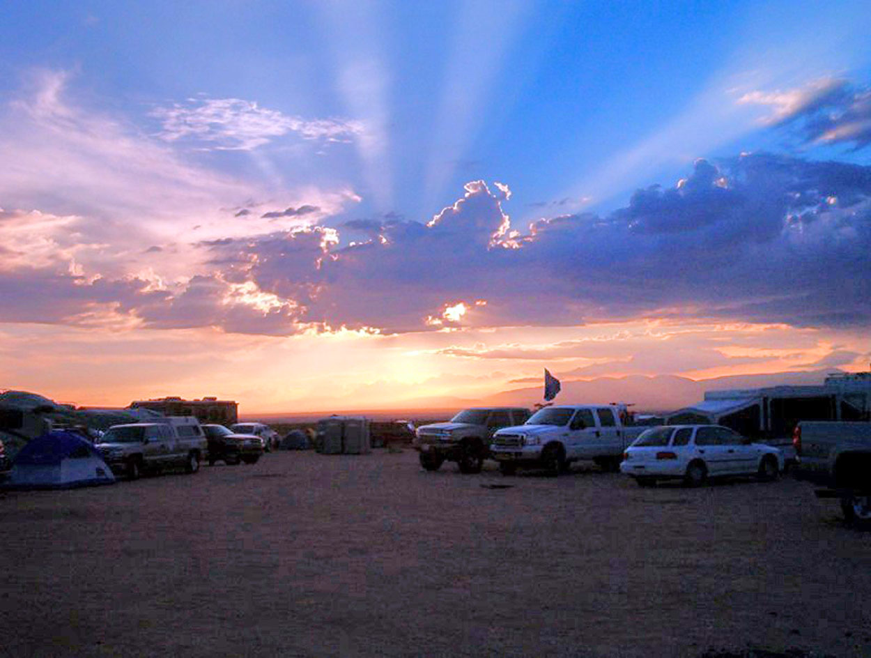 Our massive doin's was to take place on Friday, October 13, 2006, but for an event of this magnitude, site preparation had to begin two days before. On Wednesday, a Clamper advance crew marked out the one square mile area that had been designated by BLM for our use; creating traffic lanes, and setting aside areas for check-in, restrooms, dumpsters, Hawkers' Row, food service and a massive Hall of Comparative Ovations. The local and federal authorities had given their blessings to a large, one cord max, HOCO bonfire, but had nixed open fires of any other kind. In addition to the usual Clamper personnel needed to put on the doin's and to protect the PBCs from mischief, this Clampout would require Redshirts to patrol the grounds as fire marshals.