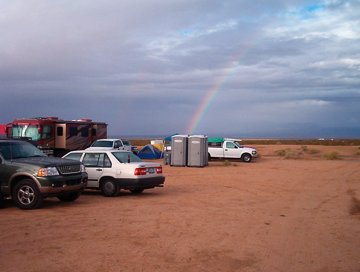 Despite the threat of intermittent rain the weather proved pleasant -- mostly shirt sleeve weather. Brothers from every chapter in Clamperdom were in attendance, and some came from as far as away as Mississippi, New York and Connecticut. The display of rigs spread out on the flat desert floor was impressive. Everywhere you turned there were tents, trucks, campers and RVs blocking the view. While the flatness of the terrain made it hard to take a photograph that would do the assembly justice, their presence could be described as a sea of Clampers wading in a giant dirt-covered parking lot; with brothers wandering from one RV or camp to another and accepting the waiting hospitality of many a brother Clamper.
